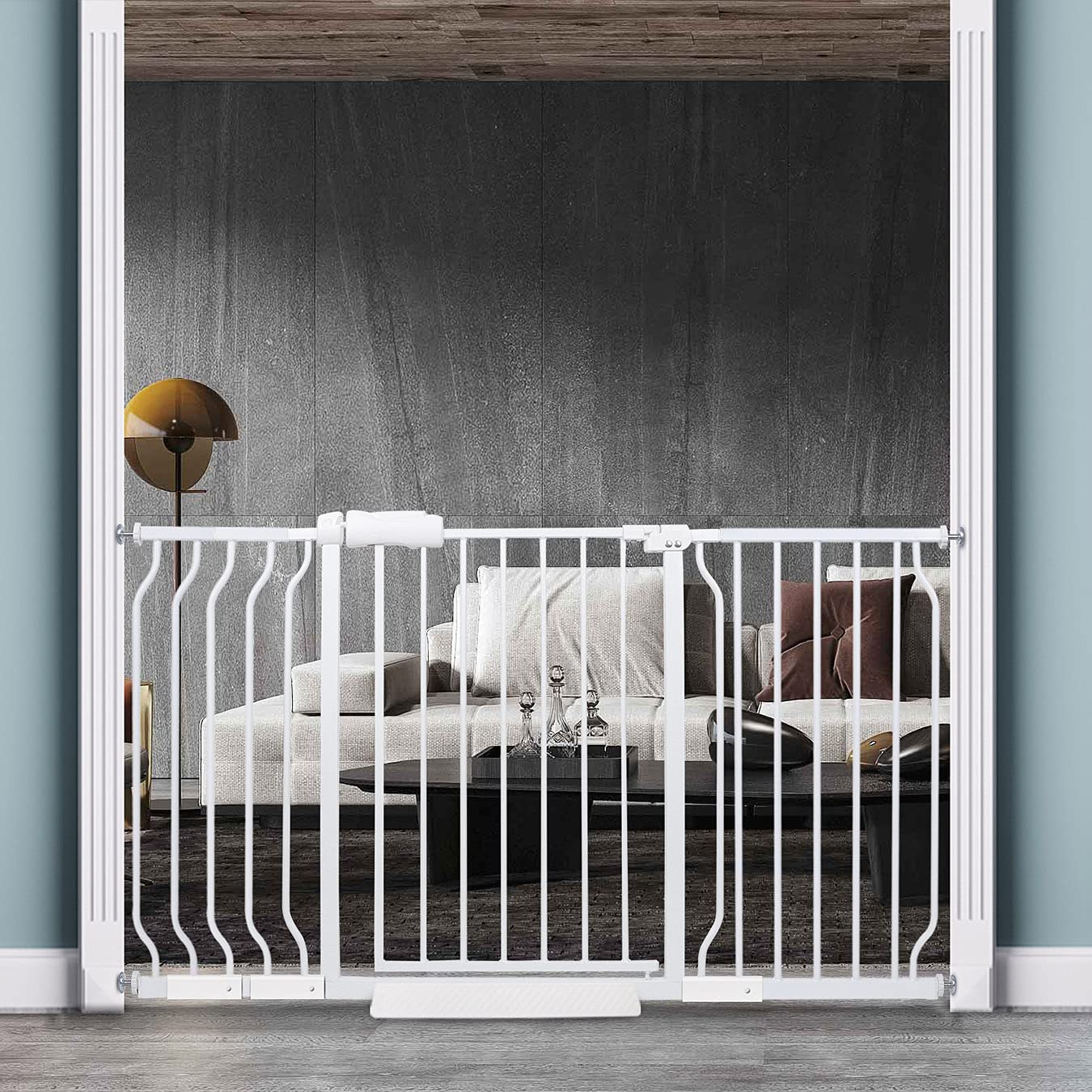 Exclusive Discount 50% Price HOOEN White Extra Wide Baby Gate for Doorways Hallway Pressure Mounted Pet Gate Walk Through Child Safety Gate 53-57.5 Inch with Extensions