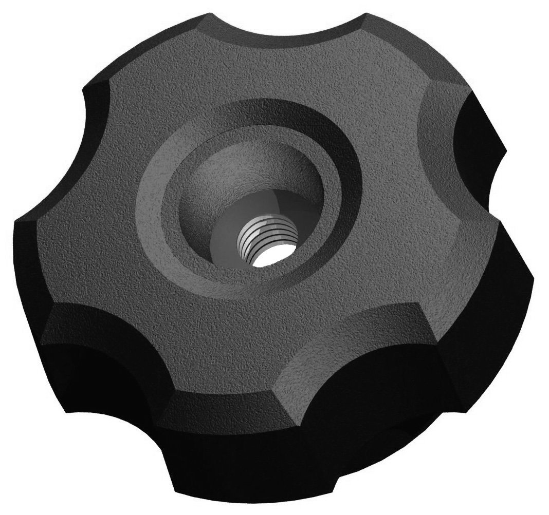 1.38" Fluted knob thru hole 5/16-18 steel zinc insert black pp