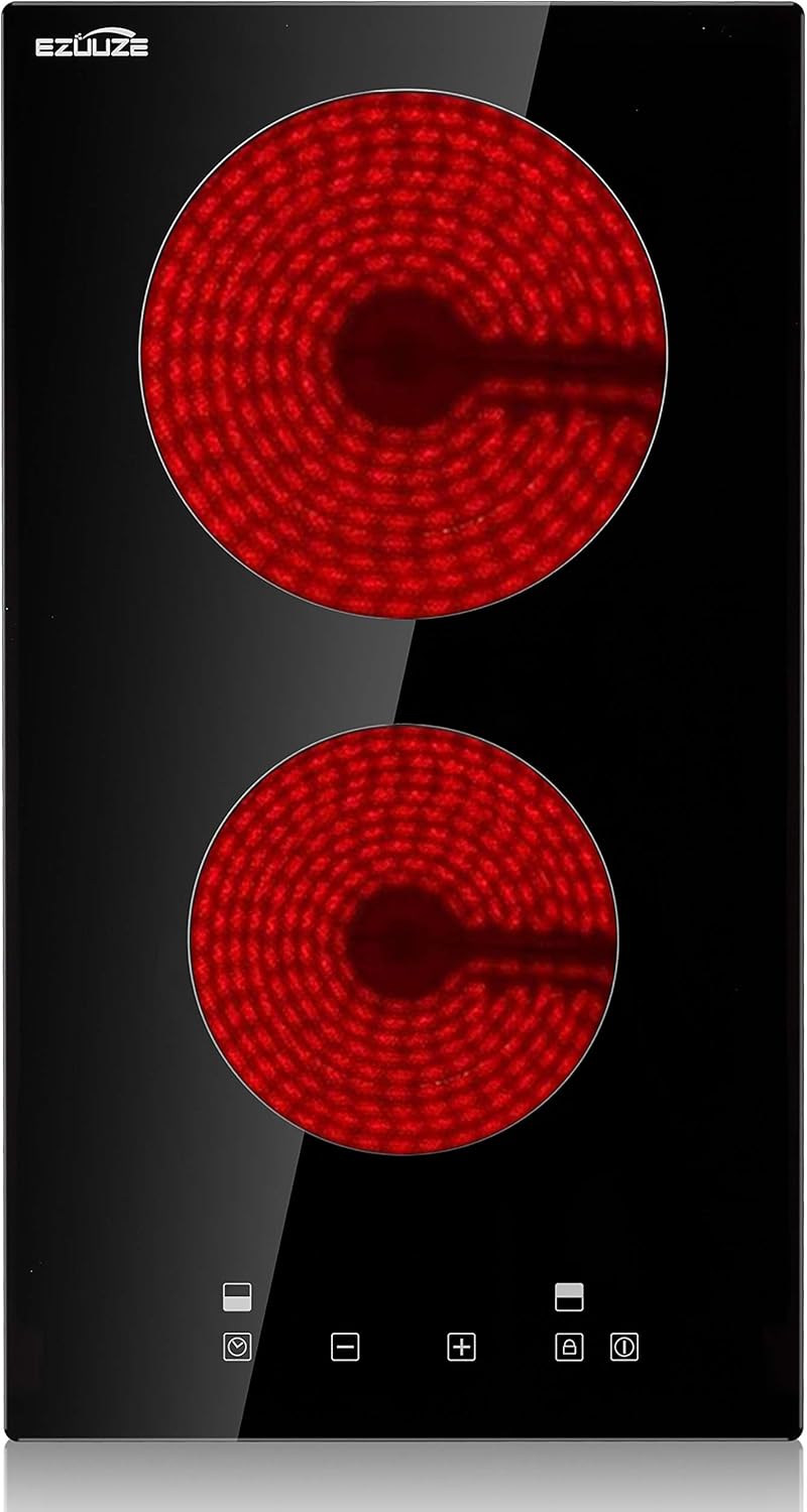 40% Off Discount Electric Cooktop, EZUUZE 2 Burner Electric Cooktop,12 Inch Electric Stove Built in, Safety lock, 9 Heating Level, Residual Heat Warning, Sensor Touch Control, 240V Ceramic Cooktop